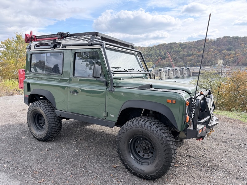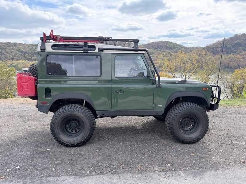 1997 Land Rover Defender 90 NAS – Coniston Green – 4.0 L V8 / Automatic – Lockers, On-Board Air, ASFIR Suspension, Roof Rack, Dual Optimas, 35” Tires