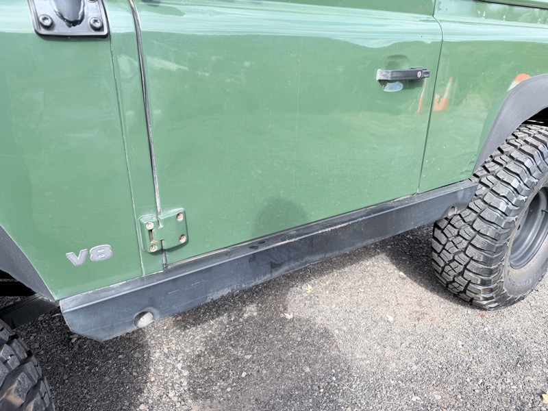 The Coniston Green paint presents well for its age with honest patina, light scratches, and minor dings. Chassis and bulkhead are solid. Rock sliders show some surface rust but remain structurally sound. The truck runs strong, drives tight, and has been kept mechanically sorted with the upgrades listed. It is a capable, trail-ready NAS Defender that can be driven anywhere with confidence.