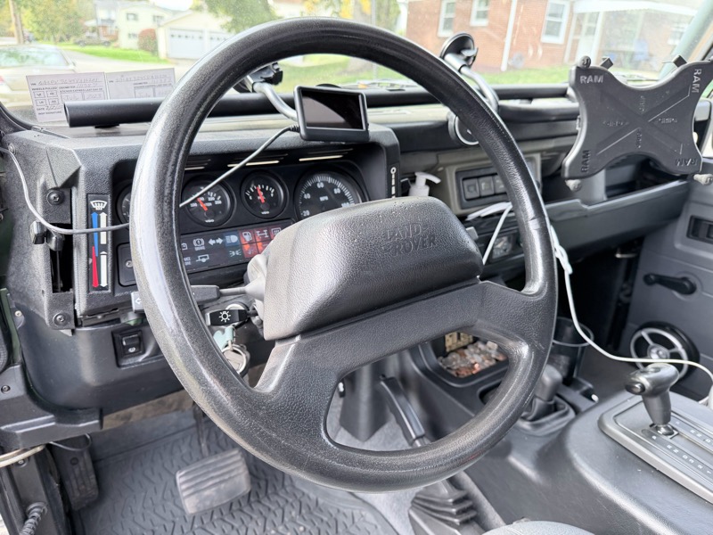 This 1997 Land Rover Defender 90 NAS is a factory hard-top station wagon finished in Coniston Green and powered by a 4.0-liter V8 paired with a ZF 4-speed automatic transmission and LT230 transfer case with manually locking center differential. It’s a three-owner North American Specification Defender originally purchased out of Oklahoma and later brought to Colorado, where it was used as a weekend adventure vehicle.